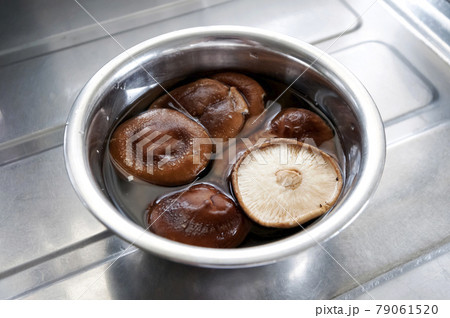 干し椎茸の水戻し|和食の乾物食材を水で戻している調理シーン