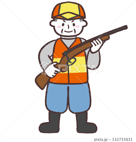 銃を構えるベテラン狩猟男性イラスト