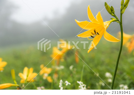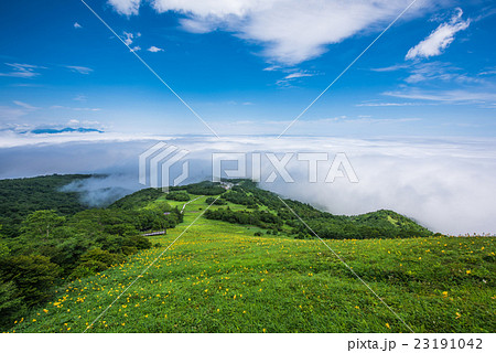 日光 霧降高原 キスゲ平のニッコウキスゲと雲海
