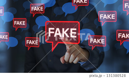 ソーシャルメディア上のフェイクニュース。悪意ある情報操作や扇情的な誤情報。ニュースアイコンをタップす
