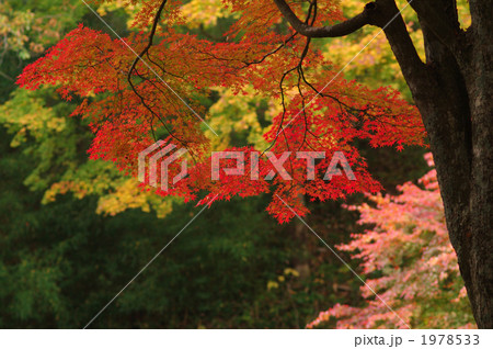 鮮やかな紅葉とキラキラ輝く木洩れ日