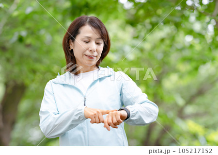 シニア女性 屋外 スマートウォッチ