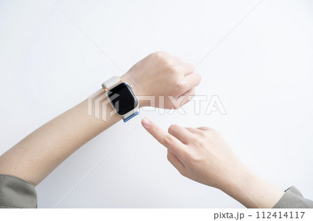スマートウオッチを着けた女性の手