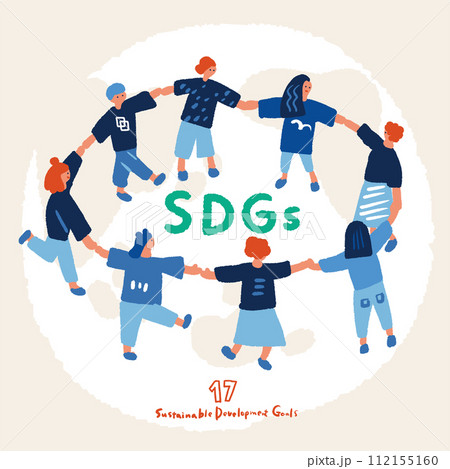 SDGsをイメージする手を繋ぐシンプルな人々のイラスト