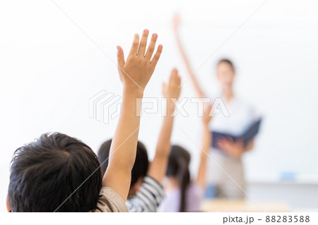 小学校、授業イメージ、挙手