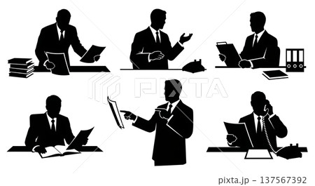 Black Solid Agents Organizing Files Silhouettes Set of Six