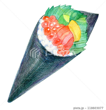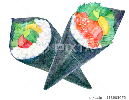 手巻き寿司の手描きイラストセット(カラー/輪郭線なし)
