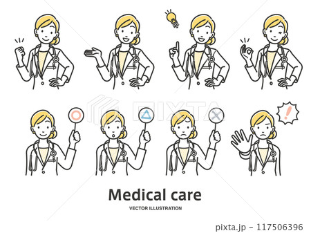 女性の医師の表情としぐさのイラストセット