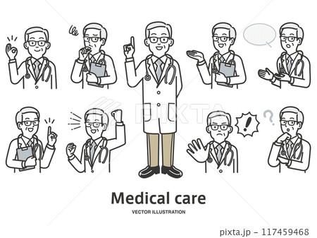 男性医師の表情のバリエーションイラストセット