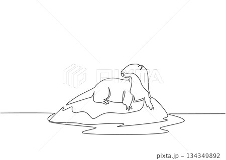 Single one line drawing otter lying on a rock. Acclimatization when summer arrives. Adaptation to avoid dehydration. Watching the prey. World Otter Day. Continuous line design graphic illustration