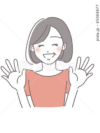 喜ぶ 手を広げる 女性 シンプル イラスト