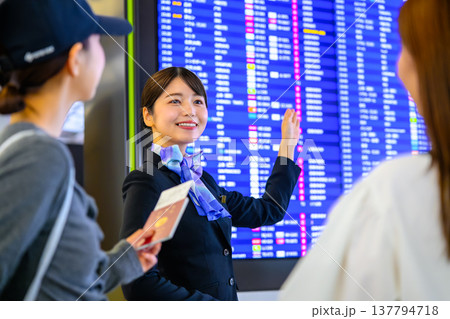 空港で案内する客室乗務員 ■撮影協力:関西国際空港(KIX)