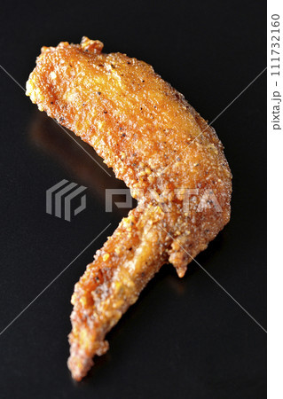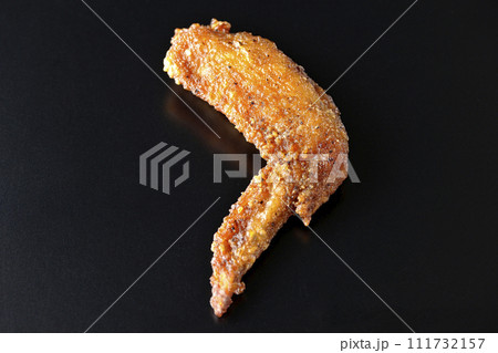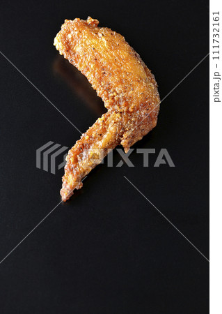 鶏の手羽先の唐揚げを黒背景で俯瞰撮影