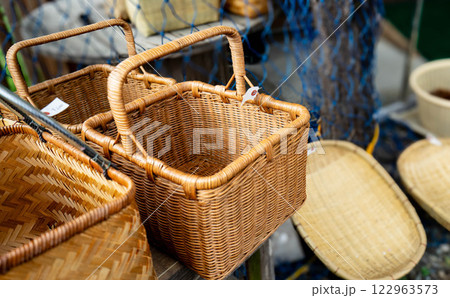 大分の竹工芸 店先に並ぶ竹細工