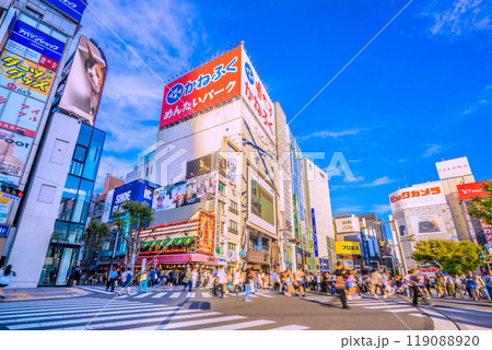 日本の東京都市景観 10月。新宿駅東口前。歌舞伎町やAlpenTOKYOなどを望む=7日