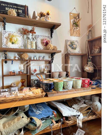 お洒落なカフェのハンドメイド雑貨や小物を販売コーナー