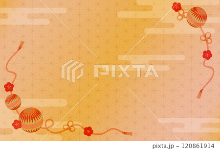手毬と梅の花の装飾の和風背景 赤色系