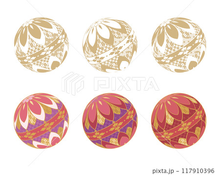 和柄の模様が付いた毬のイラスト素材セット