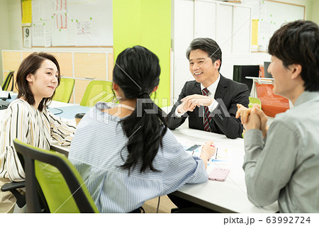 ビジネス オフィスでのわきあいあいとしたミーティング風景