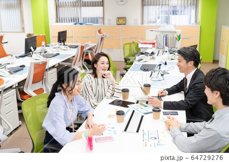 ビジネス わきあいあいとしたオフィスでのミーティング風景