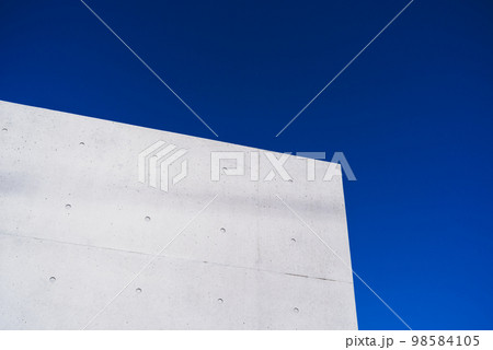 打ちっぱなしのコンクリートと快晴の青空の背景 高彩度