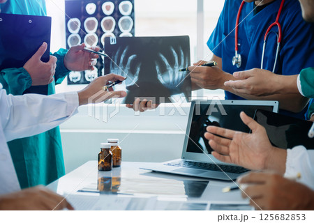 Meeting team of doctor and medical staff Consultation about the treatment of heart disease, pneumonia, gastrointestinal and stomach diseases. and osteoporosis