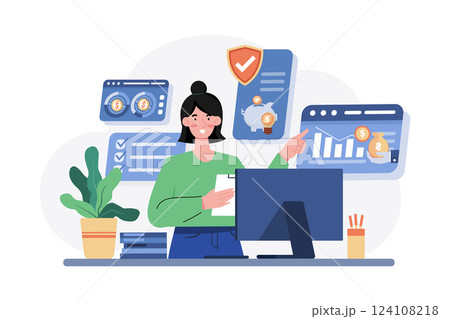 Businesswoman set. Corporate activities, multitasking, and leadership roles for modern female professionals. Office work diversity, achievement and innovation scenes. Vector illustration.