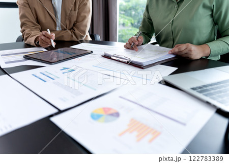 Team of business people working together in the meeting room office, teamwork background charts from financial document report, Office
