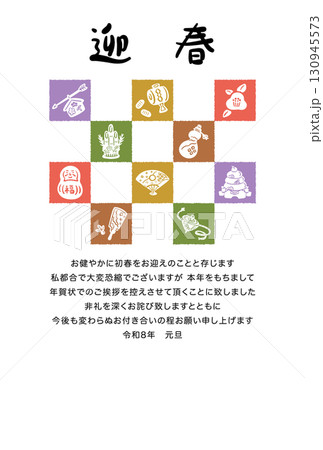 2026年賀状テンプレート 縁起物のシルエット 年賀状じまい