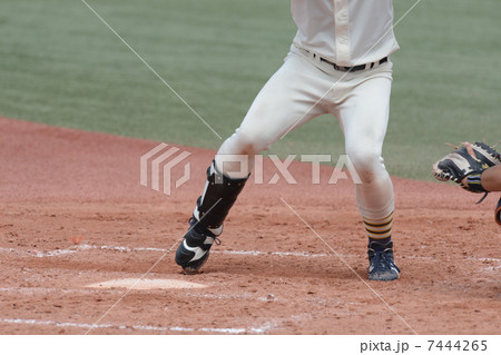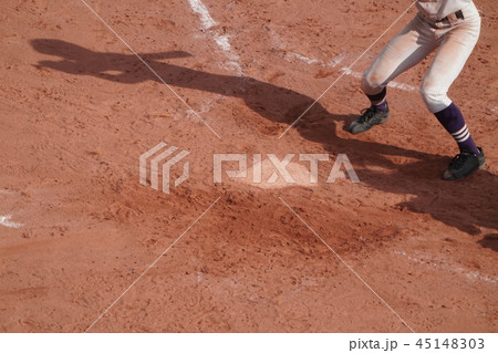 野球の試合中にピッチャーの投げたボールにバッターが構えてタイミングを合わせる選手の足元