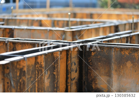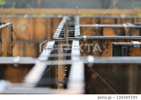 基礎工事型枠組みをする作業員イメージ