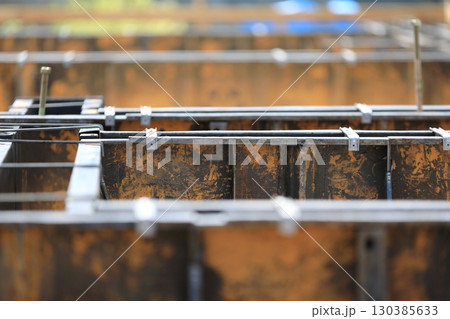 建設現場 鉄筋 型枠の締固め状況