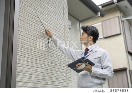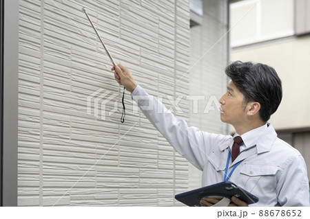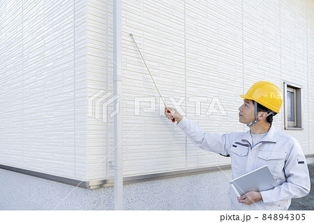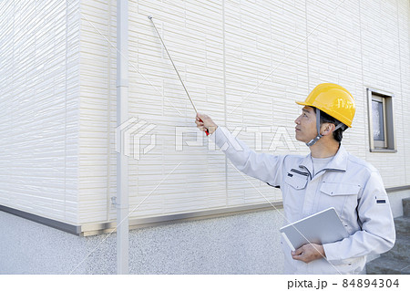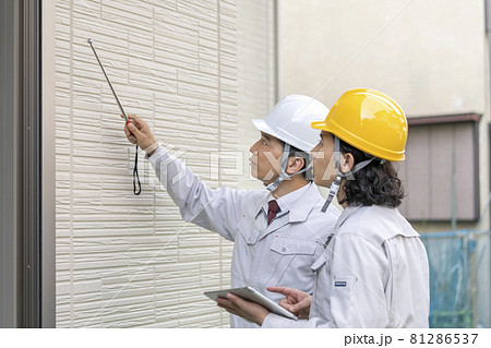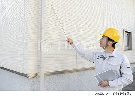 外壁チェックする作業員 施工管理 イメージ
