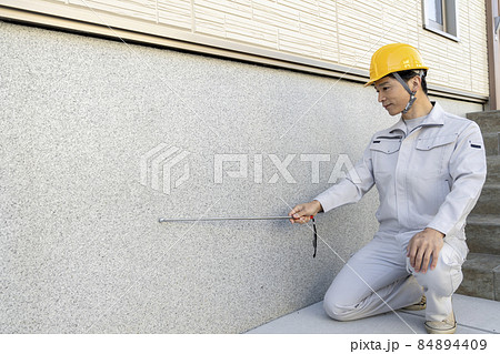 パルハンマーで外壁チェックする作業服姿の男性 施工管理 イメージ