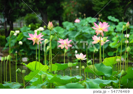 宮城県 栗原市 伊豆沼の一面に咲くハスの花