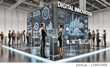 デジタルトランスフォーメーションを表現したビジネスイベントのイラスト