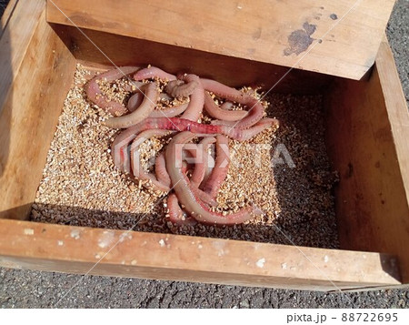 木箱に入った釣りエサ、本虫