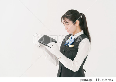 現金を持つ白い手袋の女性