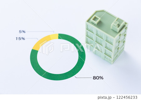 割合グラフと会社の企業ビル