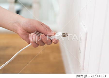 コンセントにプラグを挿し込む女性の手元