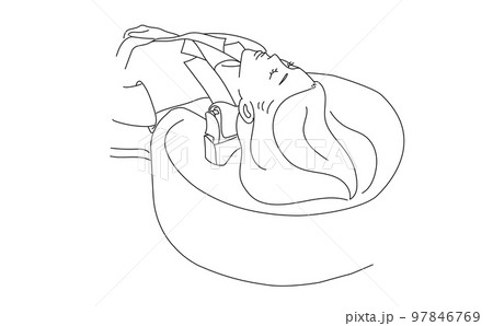 シャンプーされる女性の線画イラスト