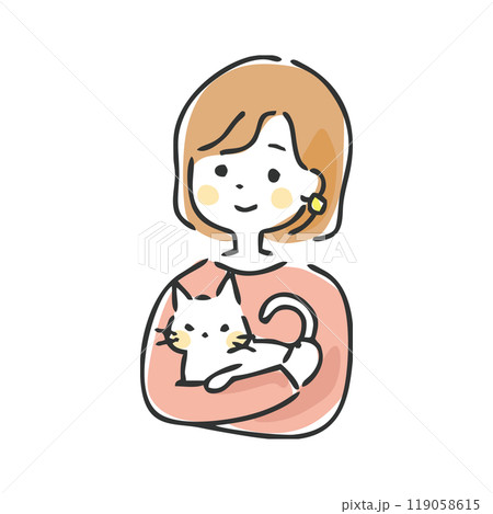 犬を抱く女性 ペットショップ店員 トリマー イラスト