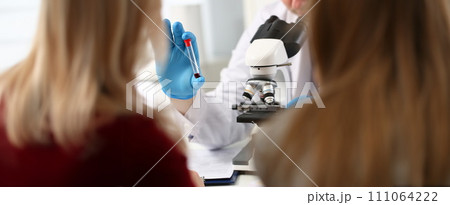 Doctor patient blood sample front microscope
