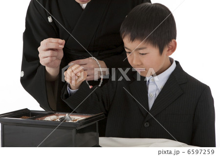 お焼香をする男性の手のアップお葬式イメージ素材画像