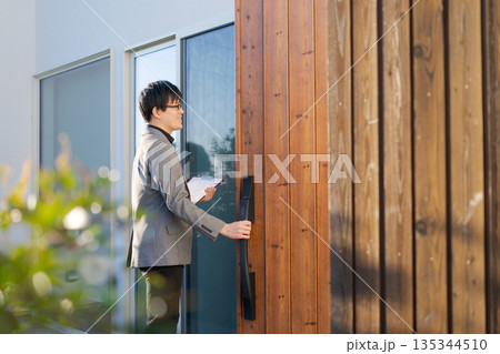 玄関のビジネスマン
