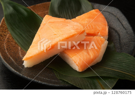 笹の葉に乗ったマスの押し寿司_2ピース
