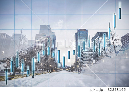 都市風景と株価チャート