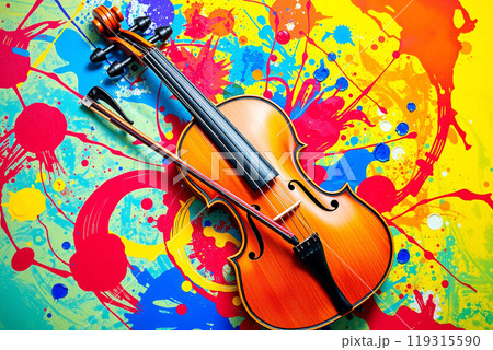 A burst of colorful paint splatters fills the air, showcasing a blend of vibrant hues.
