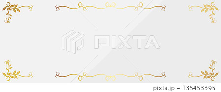 高級感のある葉っぱのバナー背景 ホワイト&ゴールド