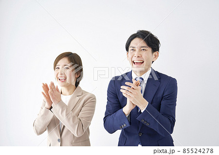 ビジネスウーマンとビジネスマン 拍手 白背景